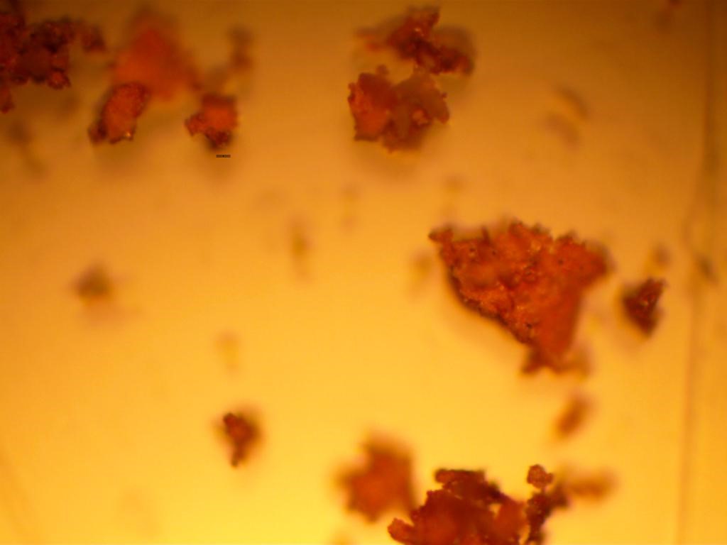 Микрофотография частиц золы балы выполнена в научно-исследовательской лаборатории комплексных физико-химических исследований на металлографическом микроскопе Altami MET 6C. Результаты представлены на Рис. 1. Видно, что зола от сжигания осадка сточных вод представляет собой мельчайшие частицы красно-коричневого цвета с очень развитой поверхностью.