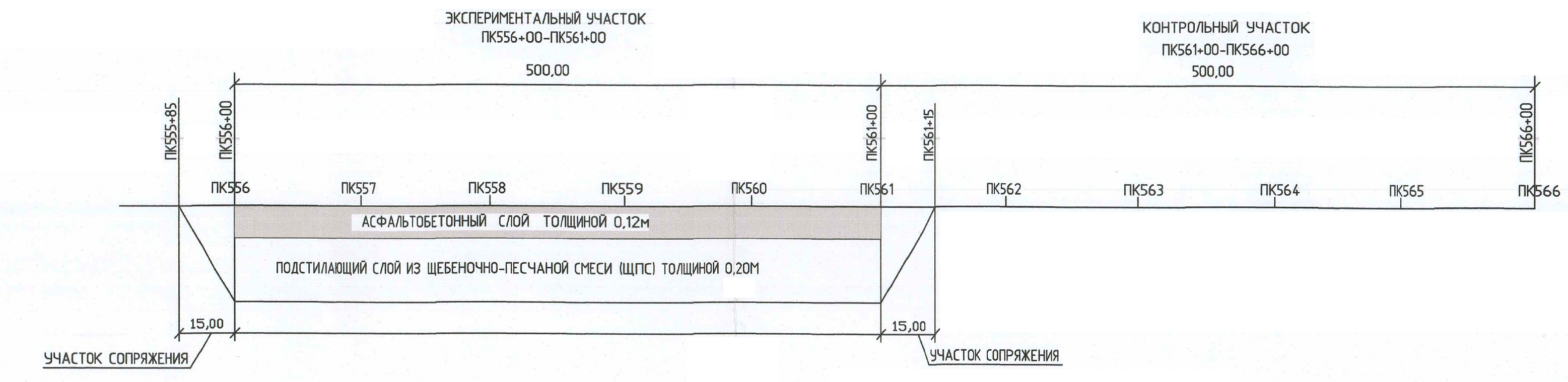 На основании выполненного комплекса лабораторных испытаний для проведения полевого эксперимента в качестве основного материала выбрана асфальтобетонная смесь А32Нт по ГОСТ Р 58406.2, уложенная в один слой толщиной 12 см с последующим уплотнением.