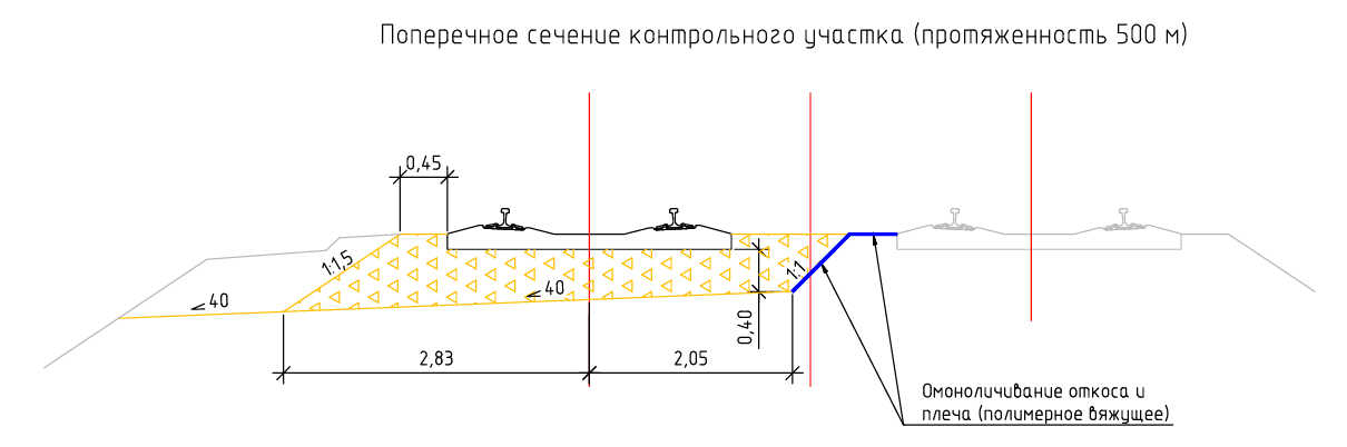 Конструкция железнодорожного пути в пределах экспериментального и контрольного участков приведена на Рис. 2, 3.