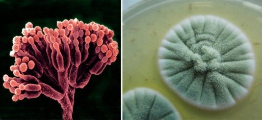 По результатам исследований [7-10] наибольшую опасность для строительных бетонных сооружений представляют плесневые грибы р. Asspergillius и р. Penicillium (Рис. 2), которые являются наиболее активными биодеструкторами строительных конструкций.