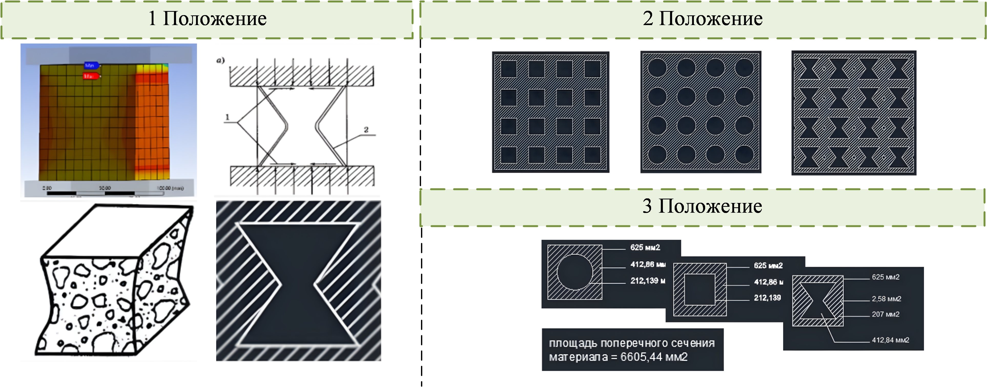 В контексте специальных сооружений, энергопоглощающие материалы необходимы для повышения податливости конструкций под динамическими нагрузками от техногенных катастроф и аварий на больших производствах. Традиционные бетоны по СП63.13330.2018 обладают ограниченными свойствами, поэтому модификация цементно-песчаной матрицы ауксетическими пустотами (ре-энтрант типа) позволяет оптимизировать поведение под нагрузкой [2].