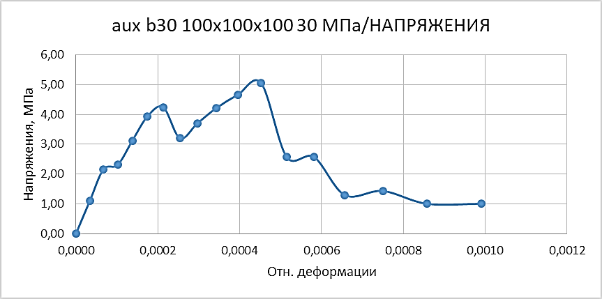 Рис. 8. Диаграмма σ-ε цементно-песчаной матрицы,